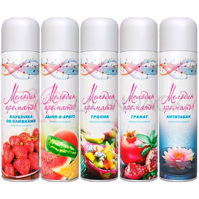 Освежитель воздуха "Мелодия ароматов" - позволит вам создать в доме атмосферу свежести и летнего настроения на свой вкус. Это качественный аэрозольный освежитель, который надолго наполняет пространство выразительным и натуральным ароматом.