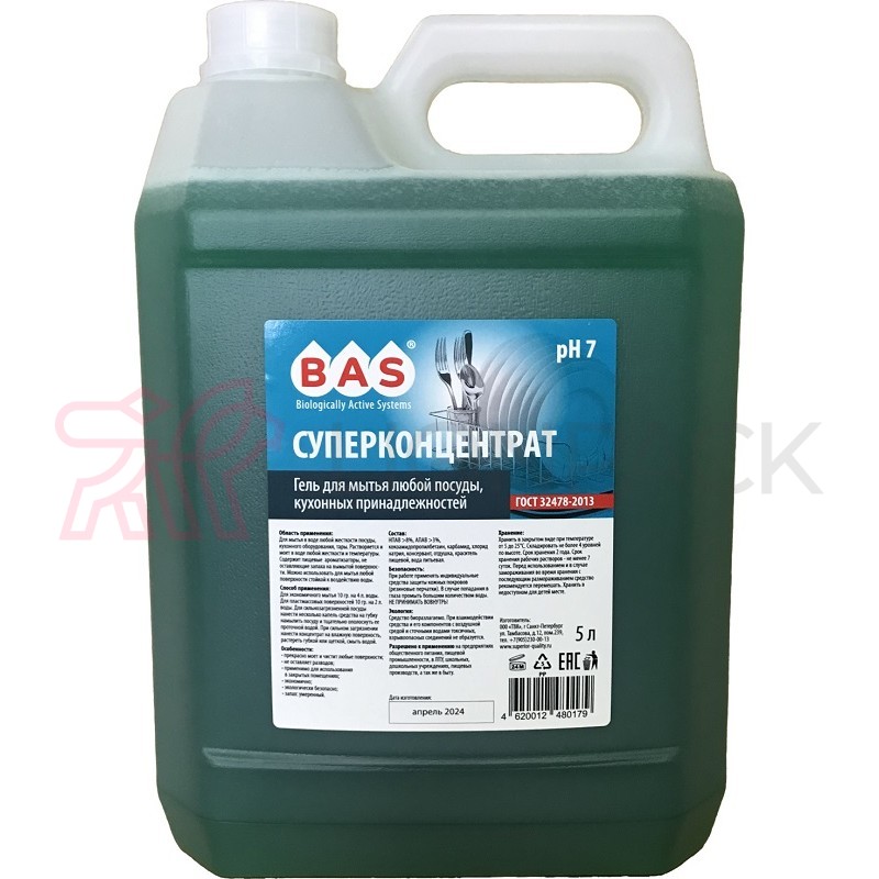 Гель для мытья посуды и пищевого оборудования БАС-суперконцентрат, 5 л