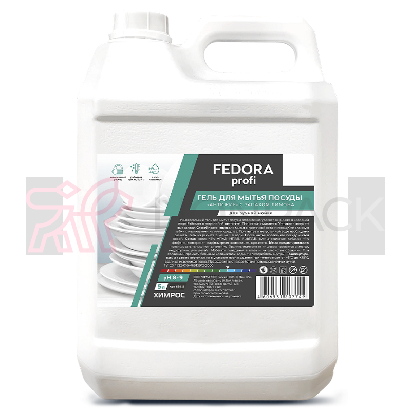 Средство Fedora разработано для обеспечения эффективной очистки посуды на предприятиях HoReCa, детских учреждений и в домашнем хозяйстве. Средство Fedora для мытья посуды в канистре ПЭТ 5 литров доступно для оптовой покупки на сайте интернет-магазина Lion Pack. Доставка осуществляется СПБ и России.
