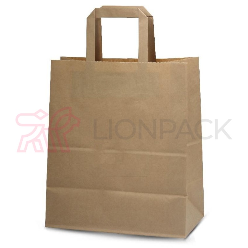 Вопросы и ответы: Крафт пакет бумажный 240х140х280 мм, 70г/м2, с плоскими ручками, 250 шт