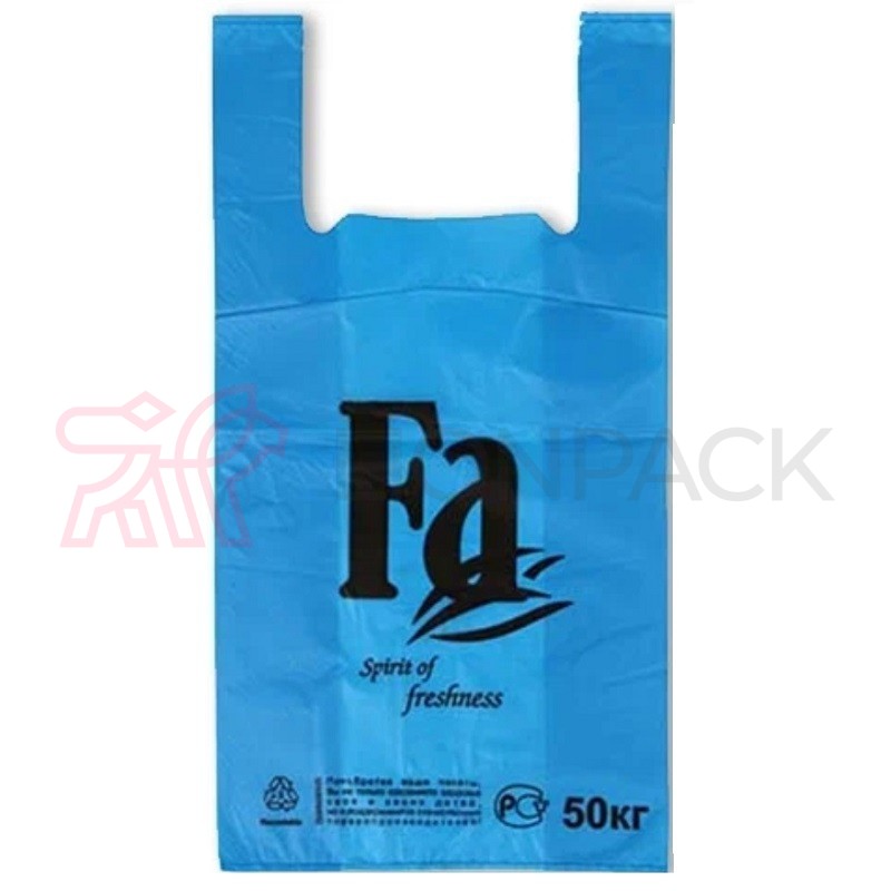 Пакеты-майки Fa изготавливаются из полиэтилена низкого давления (ПНД). Сохранность продукции обеспечивается повышенной плотностью в 25 мкм.