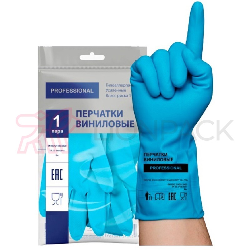 Вопросы и ответы: Перчатки хозяйственные виниловые ТР ТС Professional L, усиленные, голубые