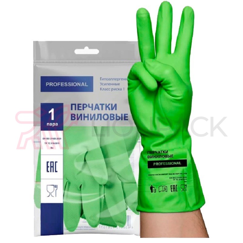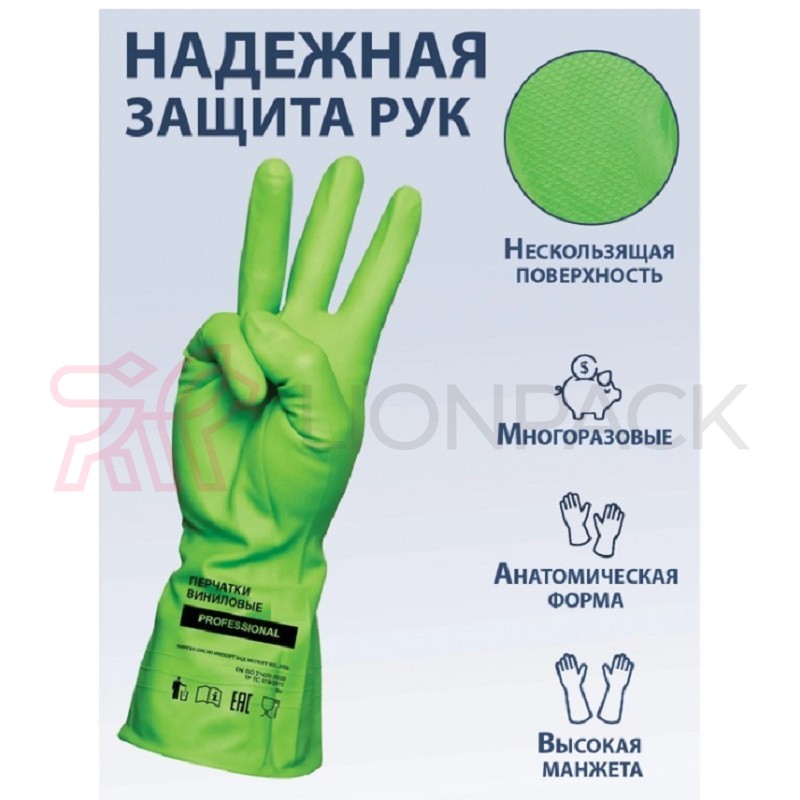 Отзывы: Перчатки хозяйственные виниловые ТР ТС Professional L, усиленные, зеленые
