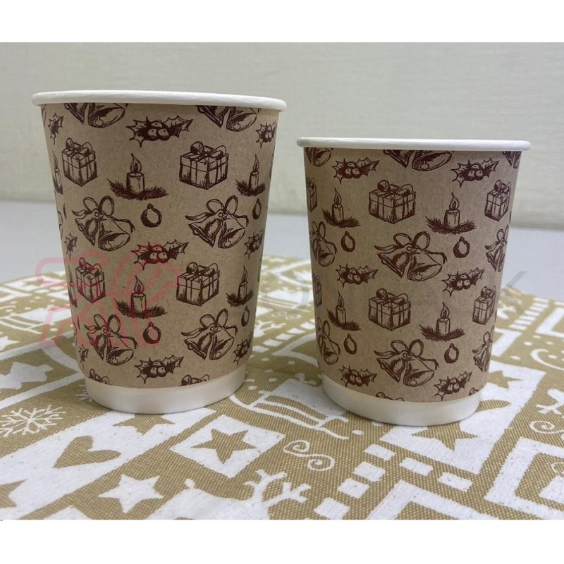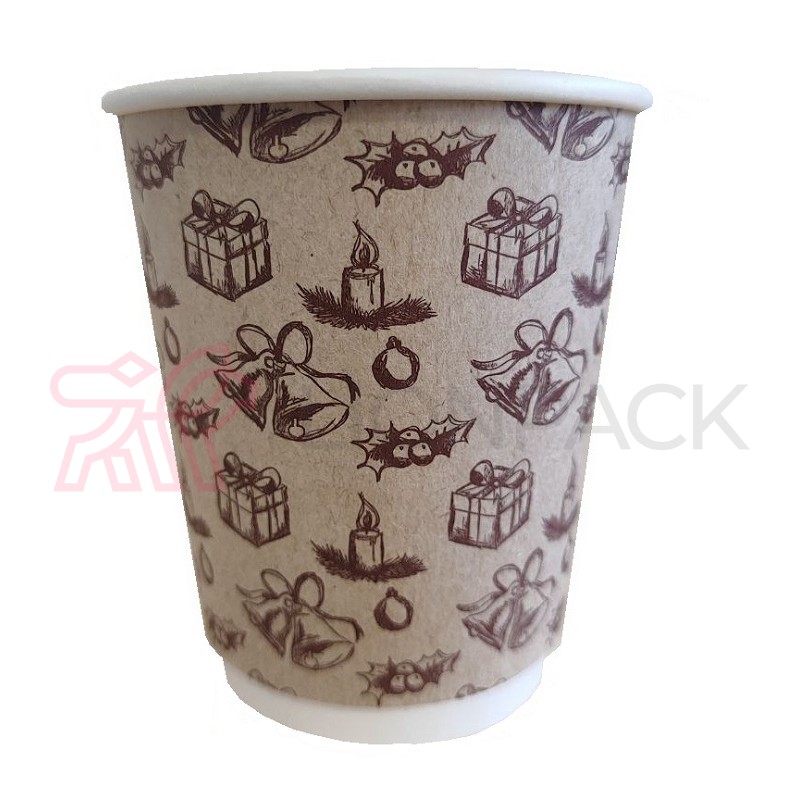 Стакан бумажный 250мл, "Новогодний" крафт, 25шт, 2-слоя, D80 M