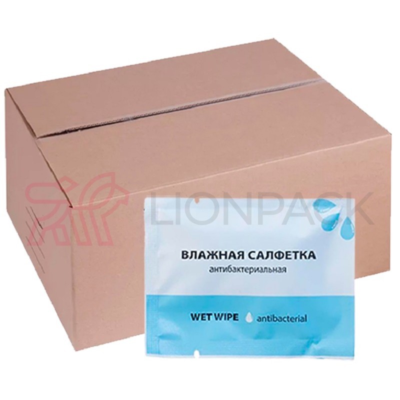 Влажные салфетки с антибактериальным эффектом 60х80 мм, в индивидуальной упаковке, 1000 шт